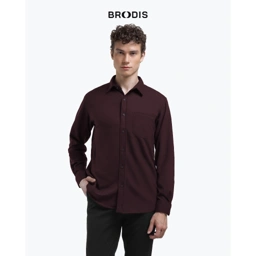 Broodis Kemeja Polos Merah Hati Cotton SOFTEE Deep Burgundy Lengan Panjang Slimfit